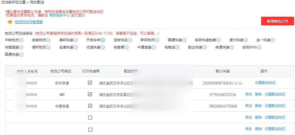 快递收货地址等信息查询